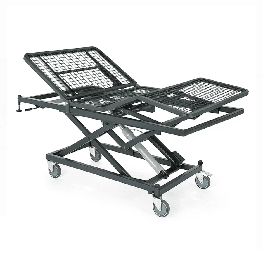 La cama incluye un carro elevador (con opción de patas, por favor consultar) que permite una elevación vertical en un rango de 38,5 a 77 cm.
